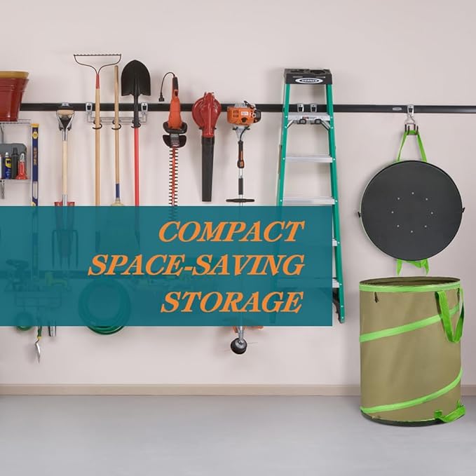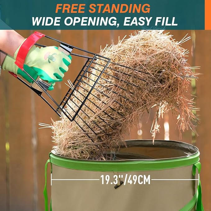 - GET THE JOB DONE EASIER & FASTER -- size: 31GALLON, 19.3''D x 25.2''H. Come with 1pack 31Gal collapsible garden bag + 1pack Leaf Scoop + 1pair of Garden Gloves. Pair with Colwelt leaf claws, you can scoop large amounts of leaves easily and quickly and dump a lot at one time into the reusable garden bag. No matter handling yard waste, toys, laundry or even camping garbage, it is a piece of cake.