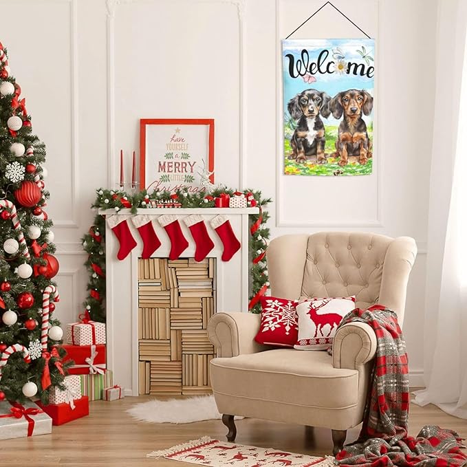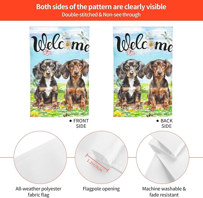 Cute Dachshund Dog Puppy Lovers Spring Flowers Florals Garden Flag Welcome Party Outdoor Outside Decorations Picks Home House Garden Yard Decor 12x18 Inch