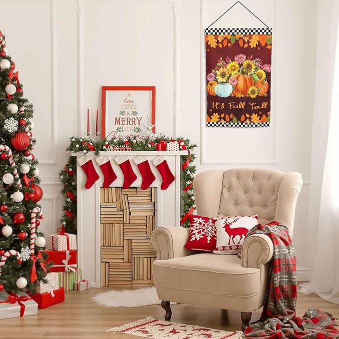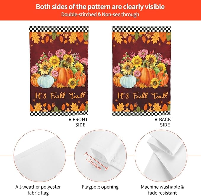 Fall Pumpkin Sunflower Daisy Pine Cones Autum Garden Flag Welcome Party Outdoor Outside Decorations Picks Home House Garden Yard Decor 12x18 Inch