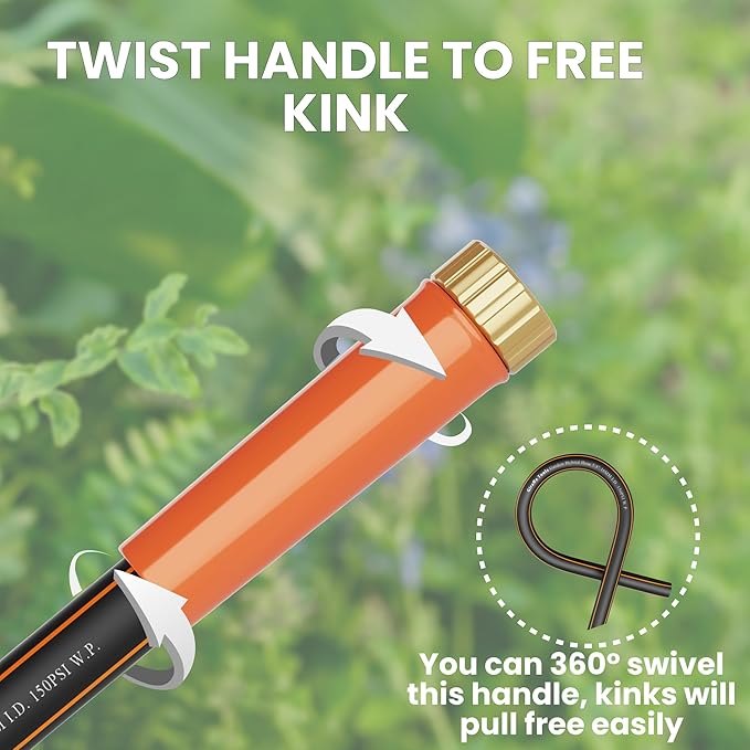 - Using Suggestion: To minimise kinking, please smooth out the water hose before use and avoid using it in a tangled state. And if your hose is kinked, please rotate swivel handle to recover it.