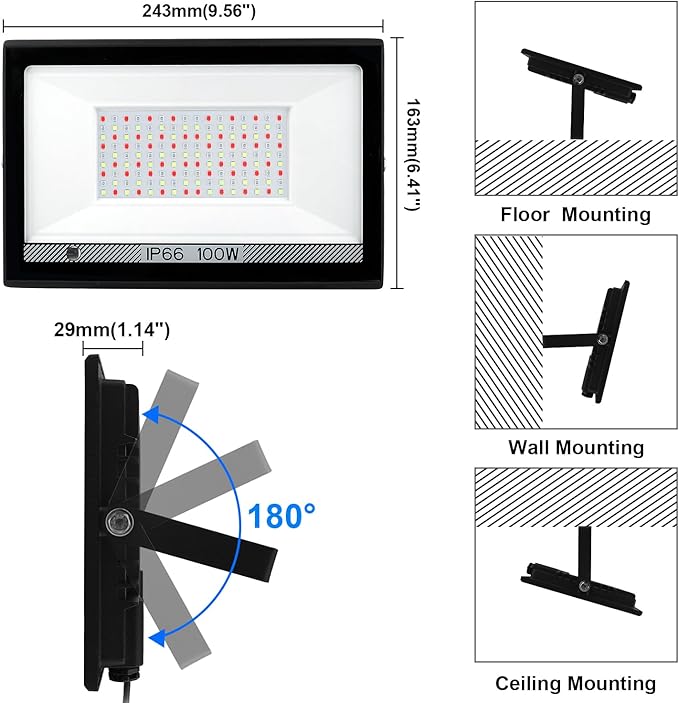 - Stable & Easy Installation - A widened and thickened adjustable metal bracket make the light more stable. You can easily install LED flood light on the ceiling, walls, ground and other locations by adjusting the bracket to different angles and following a few simple wiring steps.