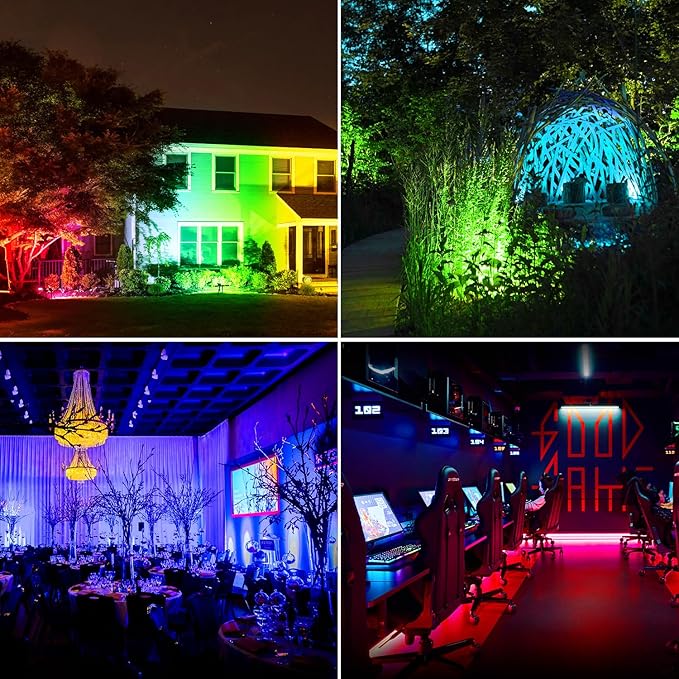 - RGB FLOOD LIGHT - Remote Control RGB flood Lights offer a versatile and dynamic lighting solution. With the ability to provide 16 different color effects and 4 distinct modes, these LED flood lights are perfectly suited for various life scenarios. Whether it's creating a DIY stage, hosting a party, celebrating a holiday, enhancing building aesthetics, or illuminating your landscape with vibrant plant displays, these lights cater to a multitude of purposes.