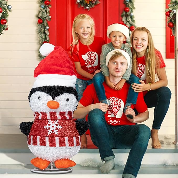 - 【Christmas Lights Decorations】Chonsun 24.8 inch penguin lights wearing a red Christmas hat and striped clothes.Decorated with snowflakes on the chest.The orange nose and feet make the penguin looks so cute, it is a perfect indoor outdoor Xmas decorations to your family.
