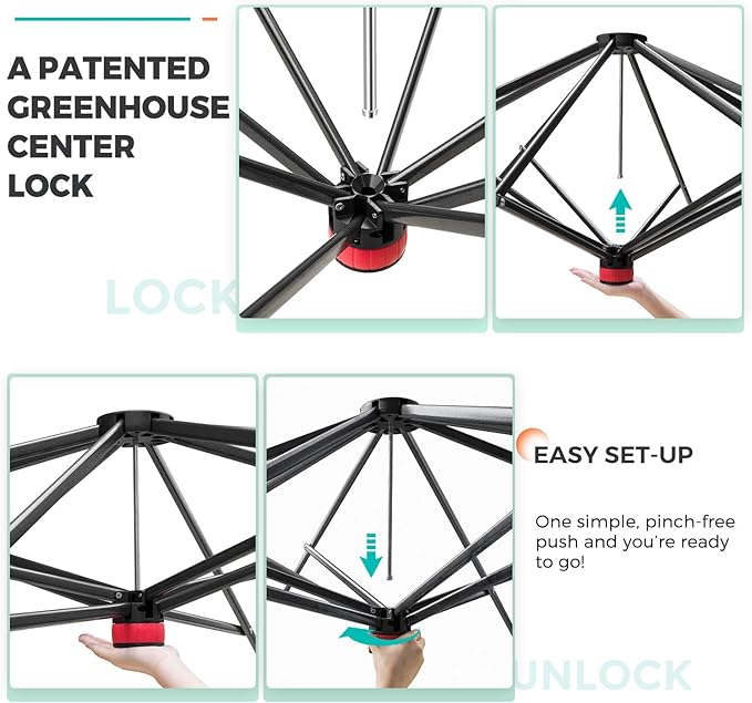 - EASY SETUP: This pop up greenhouse with patented center lock technology supports one person setup in seconds. The pre-assembled frame and innovative Peak Push locking system delivers a quick setup. No tools required. Whether you're a seasoned gardener or just starting out, the EAGLE PEAK pop-up greenhouse for outdoors saves you time and hassle