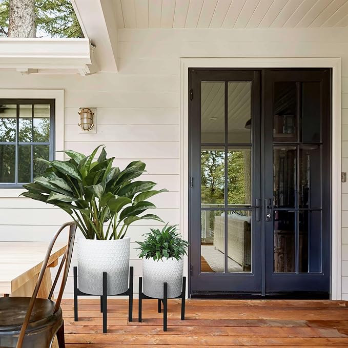 - MOBILITY & DRAINAGE DESIGN: Large planters with stand for indoor plants offer the flexibility to move plants around, allowing you to optimize sunlight exposure or protect them from extreme weather conditions. Each outdoor pot for Plants comes equipped with drainage holes, promoting proper water drainage and preventing overwatering.