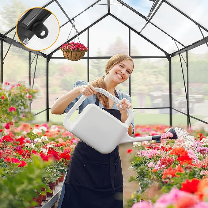 - ADJUSTABLE ROOF & ROOF HOOK: This aluminum frame greenhouse features 2 roofs vent with 4 adjustable angles for getting continuously fresh air to your plants. The built-in roof hooks provide more space for hanging pots.
