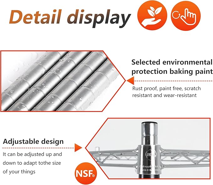- CUSTOMIZABLE HEIGHT OPTIONS: Adjustable wire shelving design lets you tailor spacing between two racks for closet storage, garage shelving, or kitchen organization. Perfect for varying item sizes.