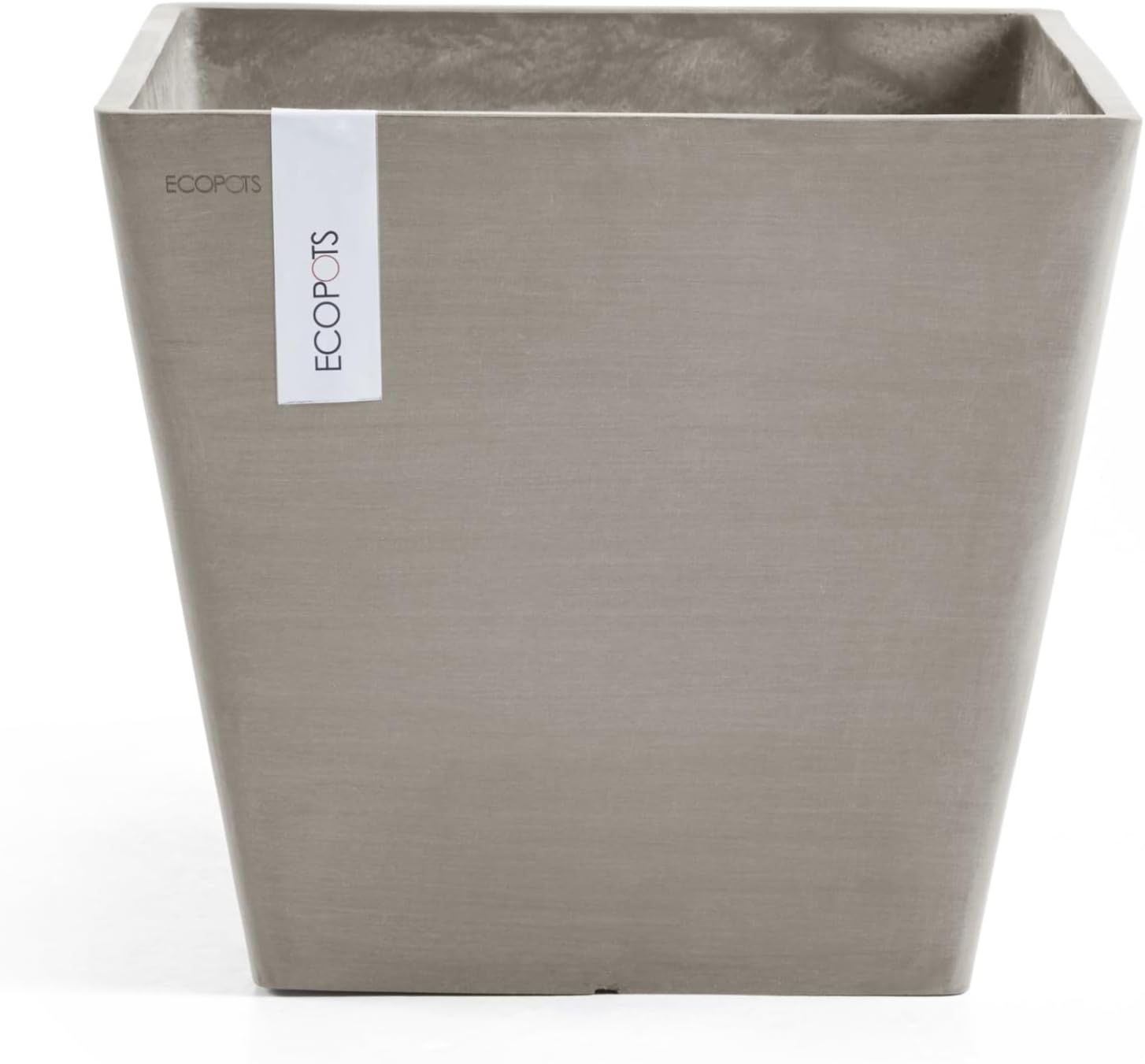 Ecopots Rotterdam Durable Modern Square Indoor/Outdoor Recycled-Based Composite Flower Planter, Taupe, 15.75"