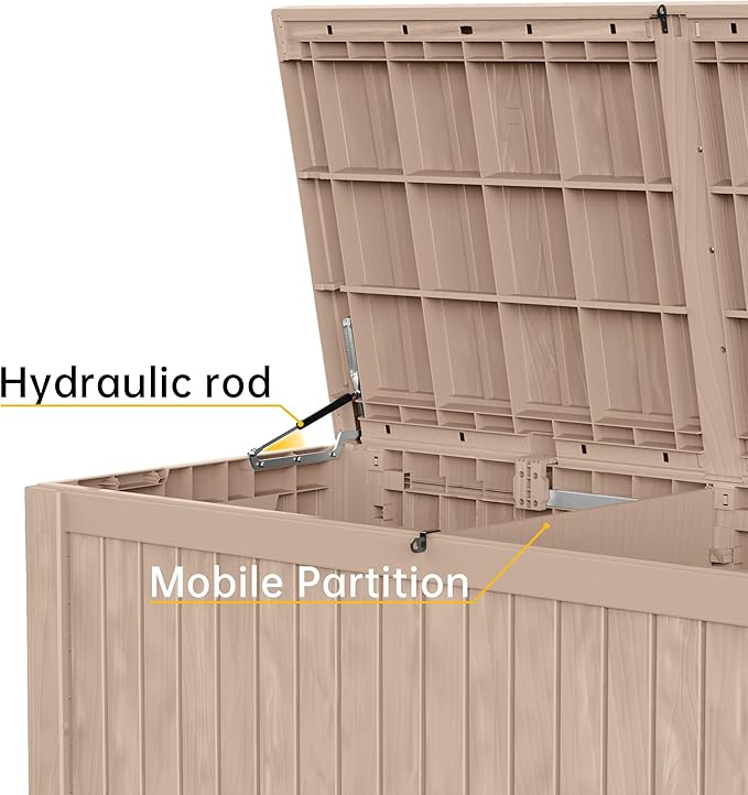 - All-Weather Waterproof Protection:Made with high-quality waterproof materials, this deck box keeps your belongings dry and safe from rain, snow, and humidity year-round.