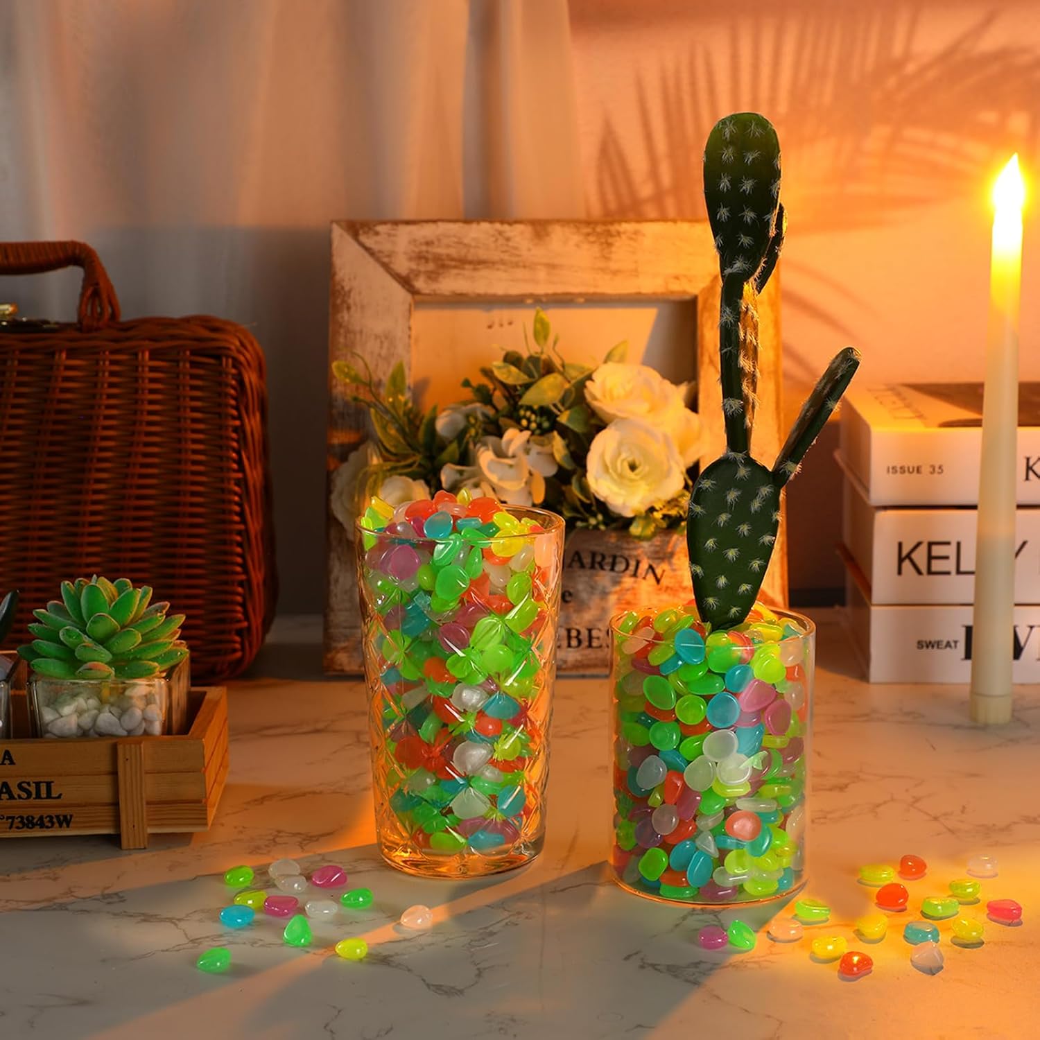 • Proper Size: with a measurement of 0.3-0.4 inch each, these glow in the dark rocks are built to sit well in various settings, like garden pathway, aquarium, or a decorative indoor jar; Their size allows them to be easily moved around to attain desired aesthetics, making them delightful decors at different places