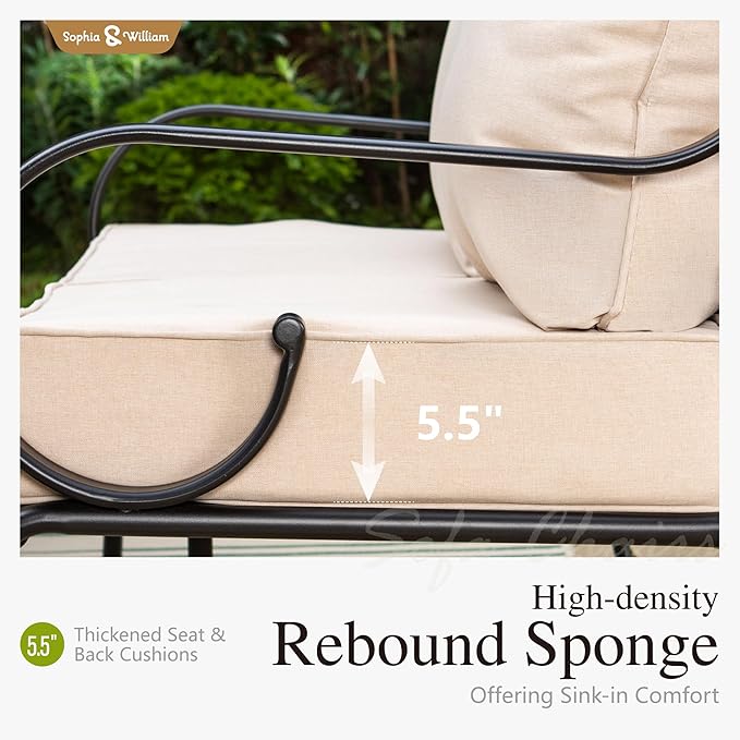 - 【All-weather Resistant】Sophia & William modern outdoor furniture set is built with thicken steel frame with E-coating for excellent rust-proof ability and and long-lasting. Steel slat cross bar on the bottom adds the stability and weight capacity up to 350lbs. With an steel frame, you'll get a clean look and create a luxurious outdoor living space for you and your guest