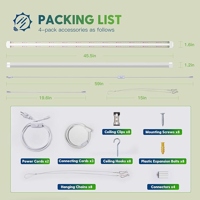 - Linkable Use: 4FT LED grow lights seamlessly connect up to 4 lights with the user-friendly on/off power cords (59 inch), ensuring comprehensive & uniform lighting coverage for your indoor plants