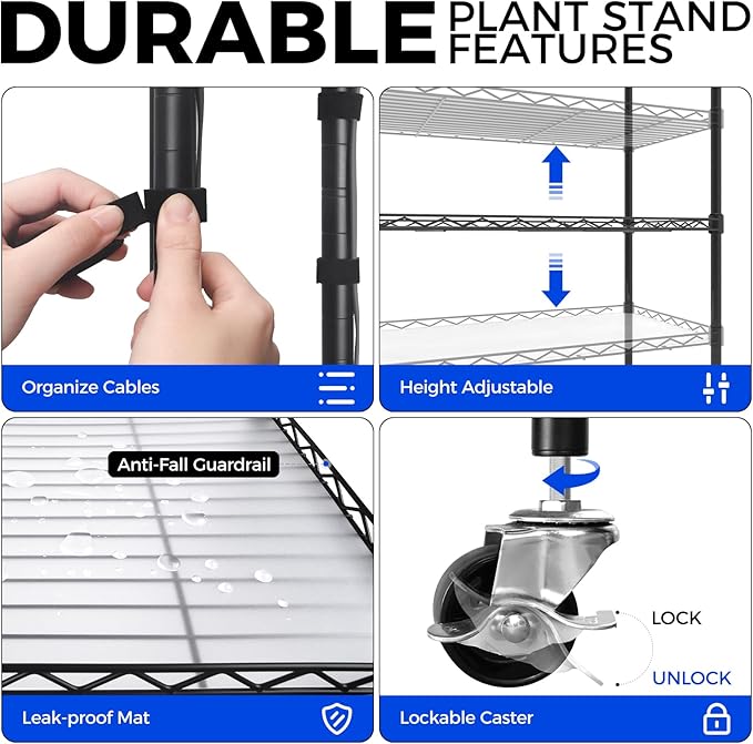 - Easy Assembly: The plant stand with grow lights for indoor plants is easy to install and does not require any tools. To prevent water from wetting the Barrina Grow Lights while watering, each tier is equipped with PP waterproof mat