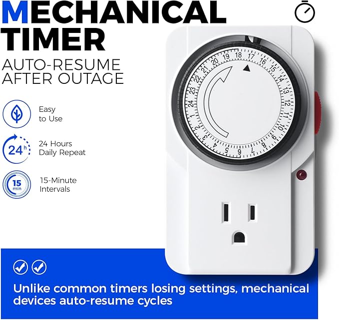 - Timer and Flexible Movement: Equipped with a 24-hour mechanical timer that controls the on/off time, providing convenient timing options. Lockable wheels on the bottom provide flexible mobility, making it effortless to move indoor plant shelf to the desired location, even when the shelves are full of planter