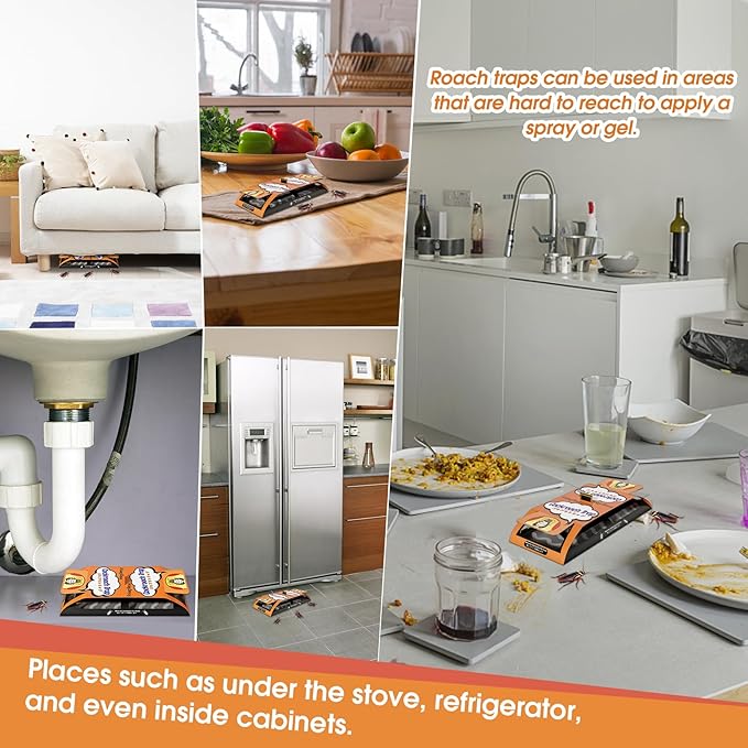- Child and pet safe: Our sticky traps for cockroaches is uninjurious, child and pet friendly, roach killer indoor infestation can be safely placed indoors, will not affect your home environment.