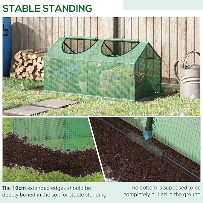- Keep the Good Stuff In: Our small garden greenhouse helps retain heat, protects plants from UV scorching, and allows nourishing sunlight to pass through uninterrupted. Please bury its extended edges to maintain a good seal.