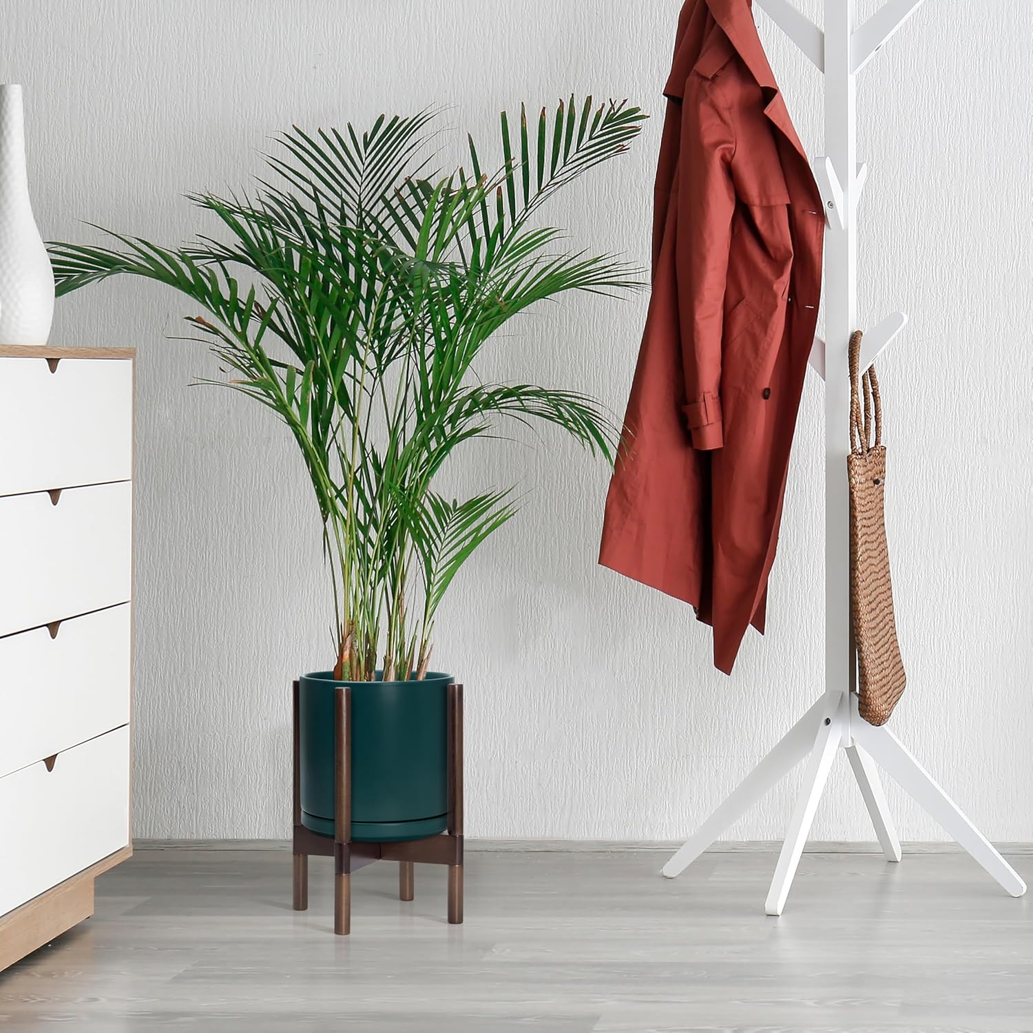 - A Complete Set: Mid-century ceramic planter, combined with a sculptural, solid wood stand that match perfectly together and looks great in anywhere.