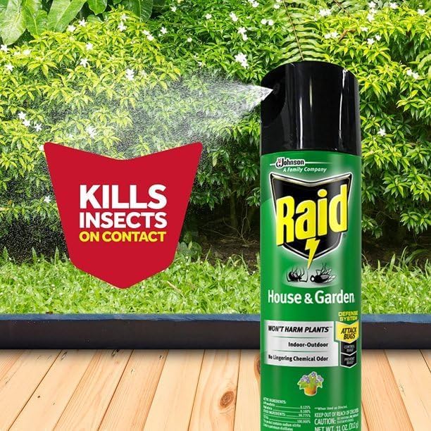 - Raid House & Garden Bug Spray kills bugs on contact and won’t damage house or garden plants
