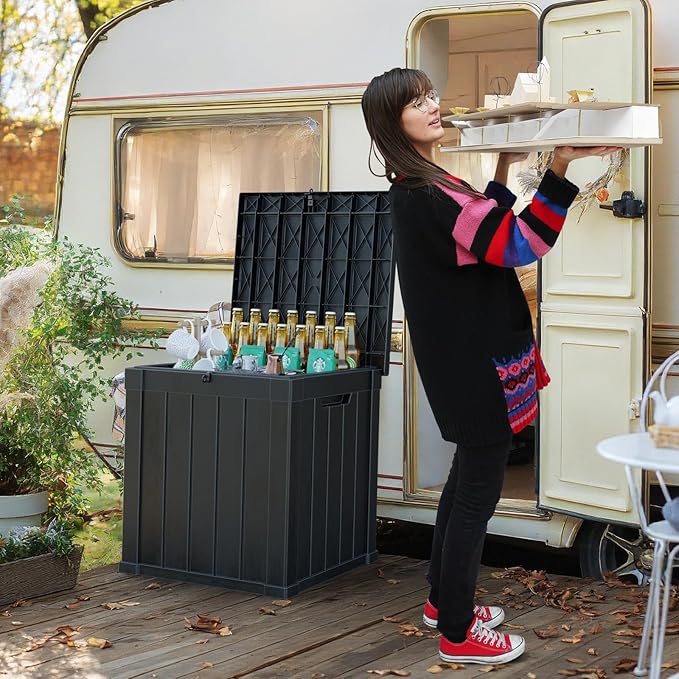 - Spacious 50 GallonStorage Capacity – With dimensions of 22.13" x 22.13" x 24.21", this large storage box holds garden tools, cushions, pool accessories, and more, keeping your outdoor space organized and clutter-free.