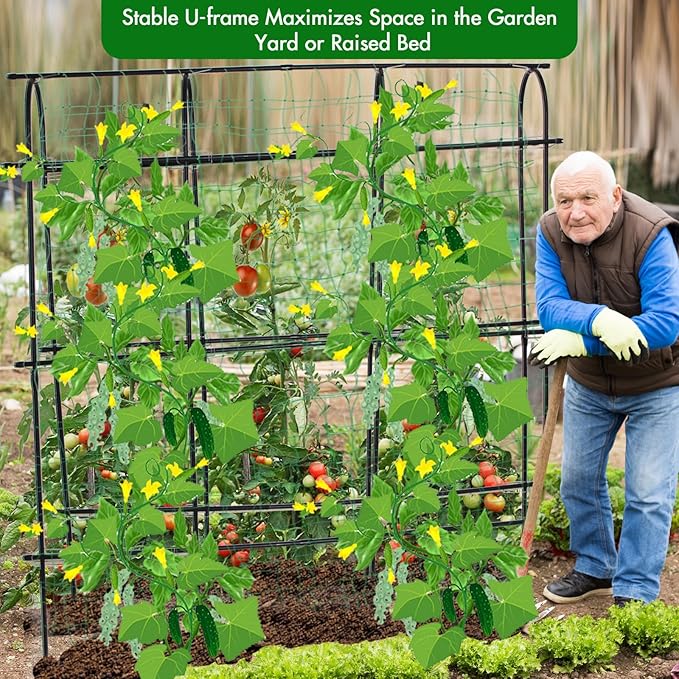- Rustproof and Long-Lasting: Our tomato trellis is made of premium metal tubes with anti-rust PE-coating, ensuring reliable support even in heavy rain and sunlight. It provides sturdy support for climbing vegetables and fruits.