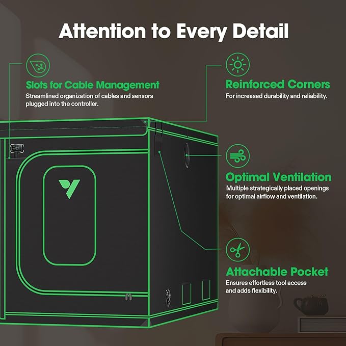 - Upgraded Lightproof Fabric: Durable 2000D Oxford canvas lined with plant-friendly PE and 100%-reflective Mylar; The three-layer thick fabric ensures zero light leaks, boosting the output efficiency of your setup; Zipper section is designed with black inner lining for enhanced light prevention