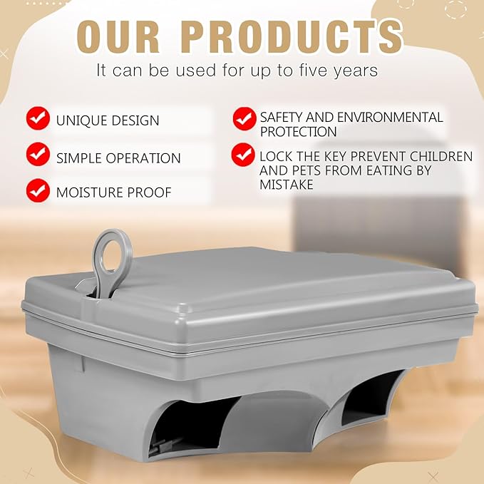 - Safe for Children and Pets: rat bait stations with keys feature built in lock system that requires a key to open the rat bait stations and expose the bait inside, which can make bait inaccessible to children, cats, dogs and other pets, while rodents have easy access to the bait