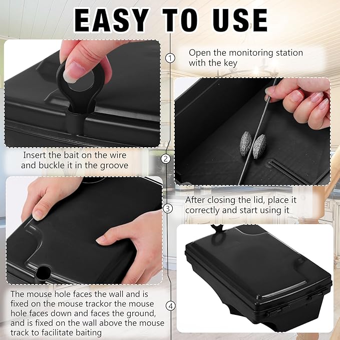 - Safe for Children and Pets: rat bait stations with keys feature built in lock system that requires a key to open the rat bait stations and expose the bait inside, which can make bait inaccessible to children, cats, dogs and other pets, while rodents have easy access to the bait