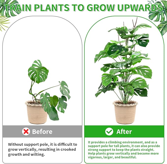- 【Suitable for Most Indoor and Outdoor Plants】Plant stake is the ideal support for various climbing plants. It is suitable for climbing plants, vines, shrubs, and flower arrangements. Such as Pothos, Money, Monstera, Philodendron, Begonia, Hoya, Ivy, Orchid, Pull Clematis, Morning Glory, Lily, Peony, etc. These plant pole supports help creeping plants with aerial roots grow vertically toward the light, mimicking their natural environment, and making them thrive under natural light.