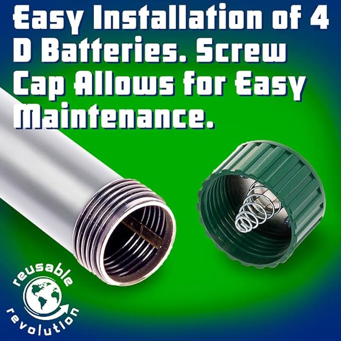 - PRODUCT DETAILS- The Sonic Mole Repellers come in a set of 4, each measuring 16.5" in length and approximately 1 3/4" circumference. Our sonic mole repellant is battery-operated. Each works with 4 D batteries (not included). Easily remove the twist-on cap to quickly change batteries.