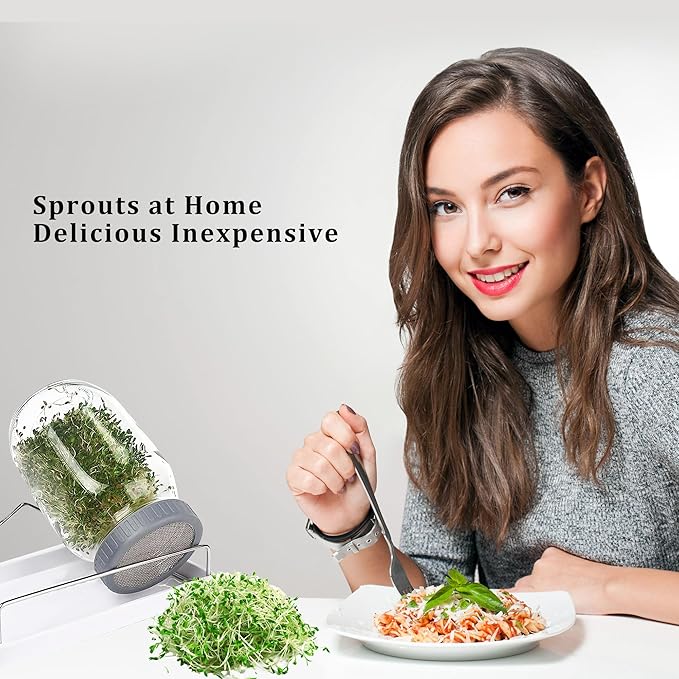 - MAKE SPROUT EASIER - Our sprouting stainless steel stand provides optimal drainage and airflow angles for jars, and keeps seeds&sprouts from rotting. Make your seeds sprout successfully every time, even a novice can sprout easily! Also, the shade sleeves will allow you to grow longer, straighter, and sweeter sprouts.