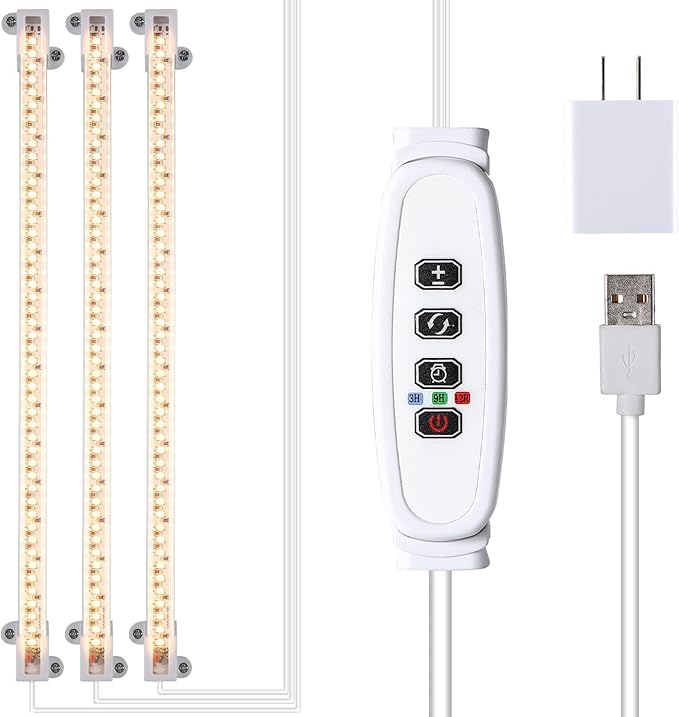 LED Grow Light Strips, Full Spectrum Plant Growing Lights for Indoor Plants 3500K, 144 LEDs Plant Lamp with 3/9/12H Timer, 10 Dimmable Levels, 3 Head 13 Inches