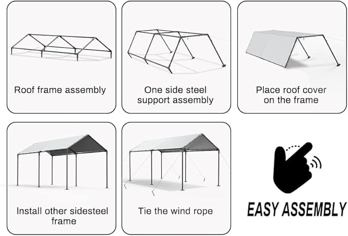 - Enough stability: V-shaped anchor stakes, connectors are welded using art, thick galvanized frame, which makes the whole steel carport more safe and stable