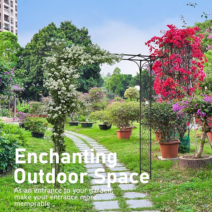 - Elegant Arch: Whether standing alone or covered with climbing vines and flowers, these outdoor metal arch add a striking focal point to your yard. Adding grace and prominence to any outdoor venue with the Arbor features squared lattice side panels