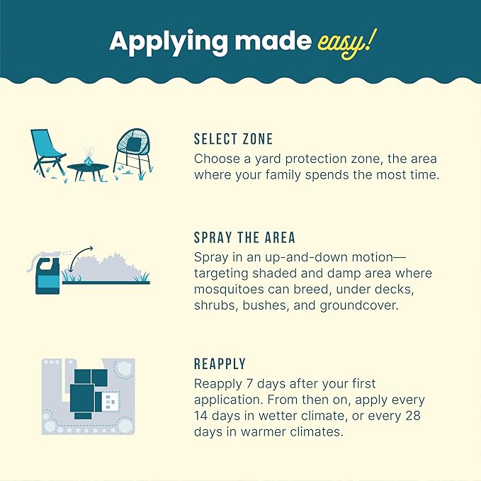- ENHANCED EFFECTIVENESS: For the best results, apply our mosquito yard control spray twice within the first 7 days to establish a robust pest barrier. Afterward, maintain your protected zone by following a regular schedule.