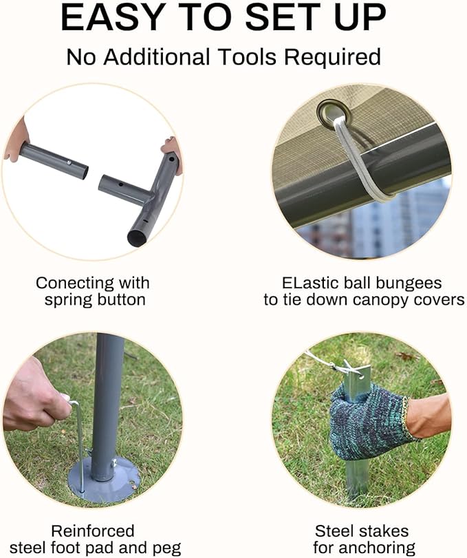 - 【Stability Design】This Carport is Supported by eight heavy-duty galvanized metal poles, The frame connector uses art-welding, elastic ball strap fastens the canopy to the frame, Come with ground stakes and guy ropes for extra support. keep your belongings safe and secure