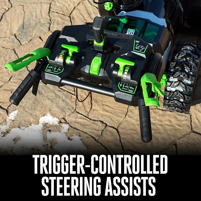- Trigger-controlled steering assists with turning the electric snow blower for more control