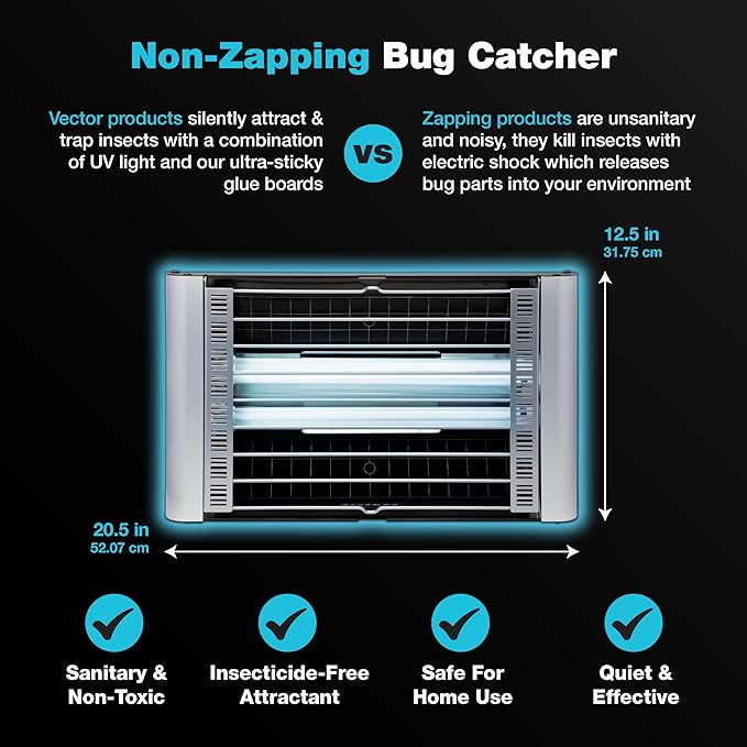 - POWERFUL UV LIGHT ATTRACTANT: The power of direct UV light exposure is utilized with this fly and gnat killer, fatally attracting flies and gnats from a significant distance away. Once the flying insects hover or linger around the fly catcher, they naturally seek the attractive warmth of the UV bulb and are silently trapped on the glue board. The Catchmaster glue traps are pre-scented, eliminating the need for fly bait.