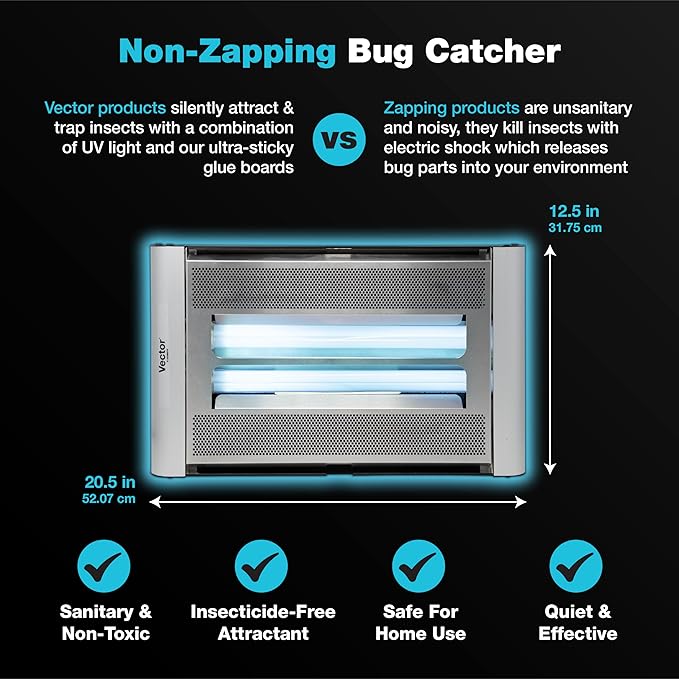 - NON-TOXIC AND SAFE: The electric bug catcher lamp is easy to use and designed for flying insect control without the use of toxic chemicals. Unlike most of the competitive insect light traps, our units have screened covers over the catch area so that the trapped flies are out of view. The flying insect trap is easy to use, clean, and silent with no zapping noise.