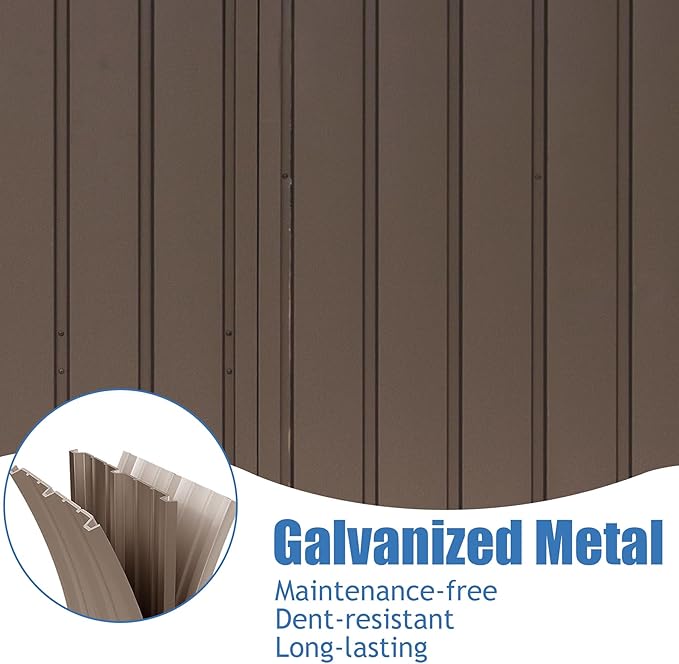 Domi Backyard Storage Shed 8.2’ x 6.2’ with Galvanized Steel Frame,Outdoor Garden Shed Metal Utility Tool Storage Room with Latches and Lockable Door for Balcony Lawn Poolside (Dark Brown)