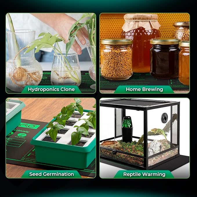 - 🌱【Waterproof and Easy to Clean】The plant heating pad has passed UL and FCC certification, the outer layer is covered with heavy-duty PVC material, the IP67 waterproof material prevents splashing and is easy to clean and wipe, and the transparent PET film protects the core components without affecting heat conduction. It helps to keep the seed mat clean and functioning normally without any safety hazards and prolongs its life
