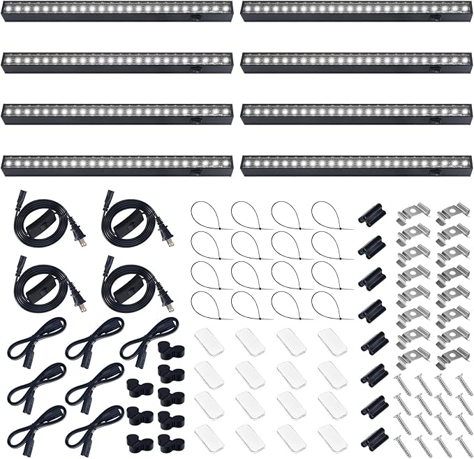 - What You Get: 8 x Barrina t5 Grow Light, 4 x Power Cord with ON/OFF Switch, 7 x Connecting Cord(20''), 16 x Installation clip, 16 x Cable tie, 16 x Magnetic bar with double-sided tape, 8 x Small connector, 8 x Dust cap