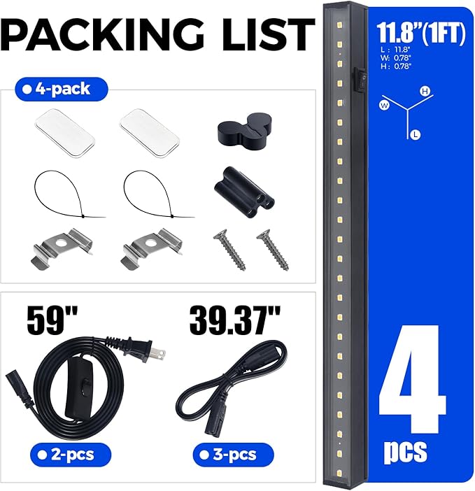 - Easy Installation: With included clips, cable ties, magnetic bar with double-sided tapes, you could install this indoor plant light by yourself in minutes. Our under cabinet grow lights can be directly attached to any magnetic surface and any non-magnetic surface. Plug and play, and you could link up to 16 lights in a series, saving your time