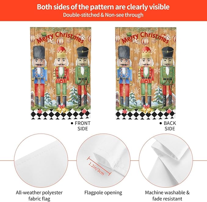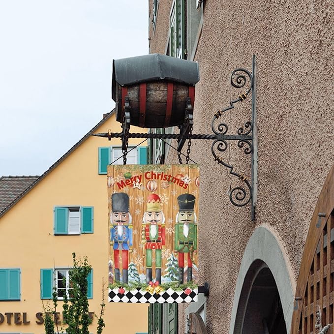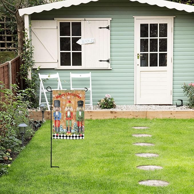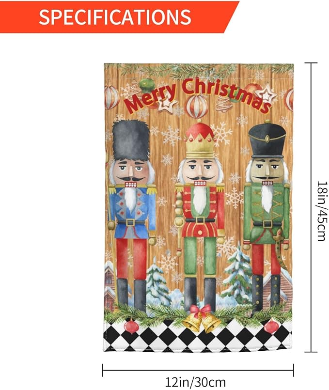 Merry Christmas Nutcracker Buffalo Plaid Check Garden Flag Welcome Party Outdoor Outside Decorations Picks Home House Garden Yard Decor 12x18 Inch