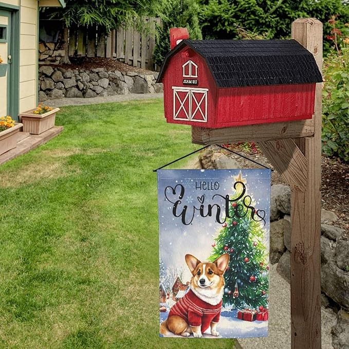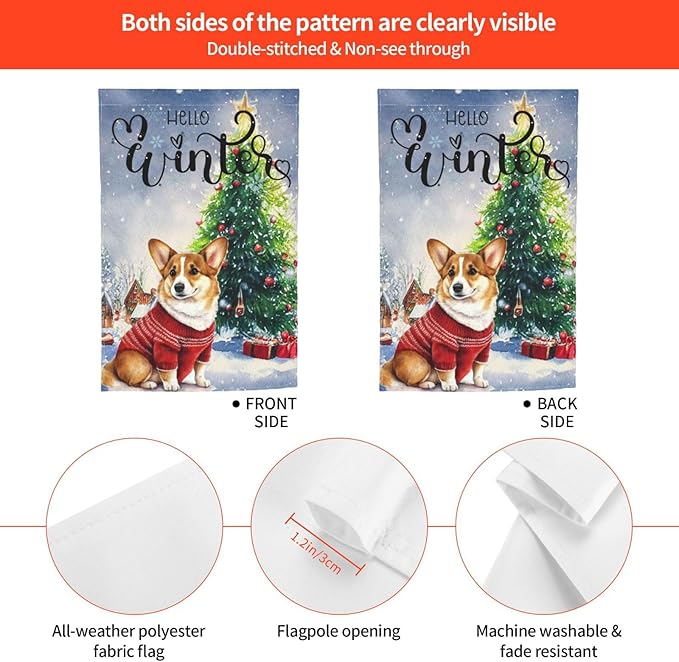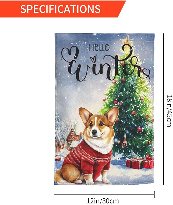 Hello Winter Merry Christmas Cute Pine Snow Garden Flag Welcome Party Outdoor Outside Decorations Picks Home House Garden Yard Decor 12x18 Inch