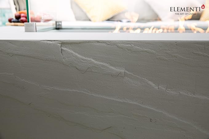 Elementi+ | Meteora Gas Fire Pit Cast Concrete 56" Rectangular Fire Table, Outdoor Fire Pit Electronic Ignition | Canvas Cover, Fire Glass and Burner Lid Included | Light Gray | Natural Gas