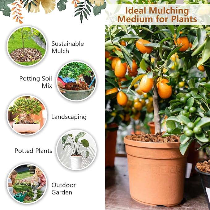 - Healthy Plants Growth: Our coco coir chips is an excellent mulch for indoor and outdoor plants, ensures adequate oxygen flow, improves soil nutrients and reduces weed growth; Good protection against harsh weather, frost protection to keep plants alive and thriving, ideal sustainable mulch for orchids and landscaping