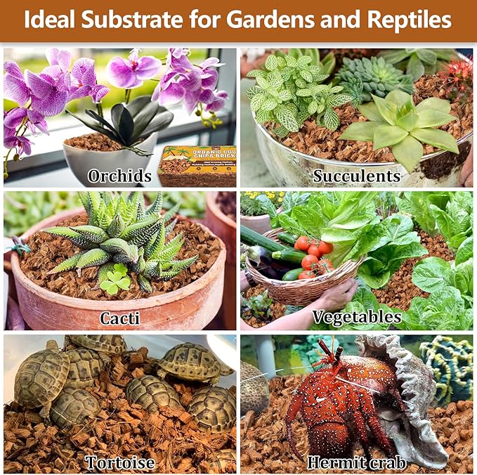 - Wide Application: Coco chips are suitable for garden planting, indoor flower pots, potting mixes, seed germination, raised garden beds, etc, promoting healthy root growth and rapidly expands the root system; Ideal for cacti, succulents, herbs, vegetables, microgreens and hoyas; It can also be used for reptile substrate and improve the living environment for pets