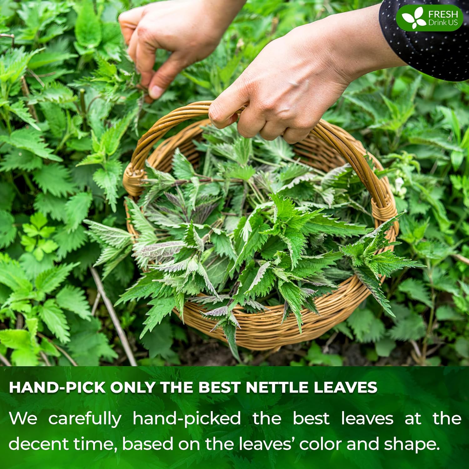 - ☘️ FROM FRESHLY PICKED, NATURALLY DRIED NETTLE LEAVES: The best Nettle leaves are picked at a decent time, washed with fresh water, dried in the sun, ground with years of experience to the best tea size, and carefully packed to preserve the flavor and distinct aromatic effect.