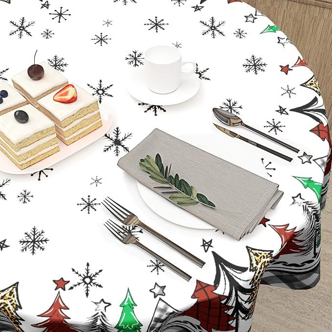 Giwawa Christmas Round Tablecloth 60 Inch Snowflake Xmas Trees Black Buffalo Plaid Decorative Table Cloth Polyester Washable Table Cover for Winter Holiday Party Picnic Dinner Decor