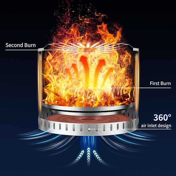 - [High-quality Material]: OutVue smokeless fire pits are made of stainless steel, with stable heat resistance at high temperatures, good corrosion resistance, and long service life. This low smoke fire pit is ideal for 4-8 person camping, bonfires, and patio gatherings. Dancing flames create a bright and comfortable atmosphere and extend your outdoor recreation time.